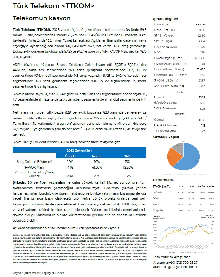 Haber İnfo Yatırım’dan Türk Telekom Finansal Değerleme Raporu ömer sarı6 Kasım 2025 Bu rapor İnfo Yatırım Tarafından Hazırlanmıştır